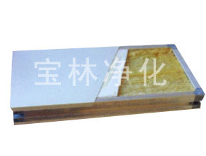 石膏复合板两面采用钢板、四周采用冷拉型材框架,贴石膏板填岩棉胶合成型,该产品表面平整美观、隔音、绝热、保温、抗震、防火性能好、几何尺寸准确、安装方便、省时省工。